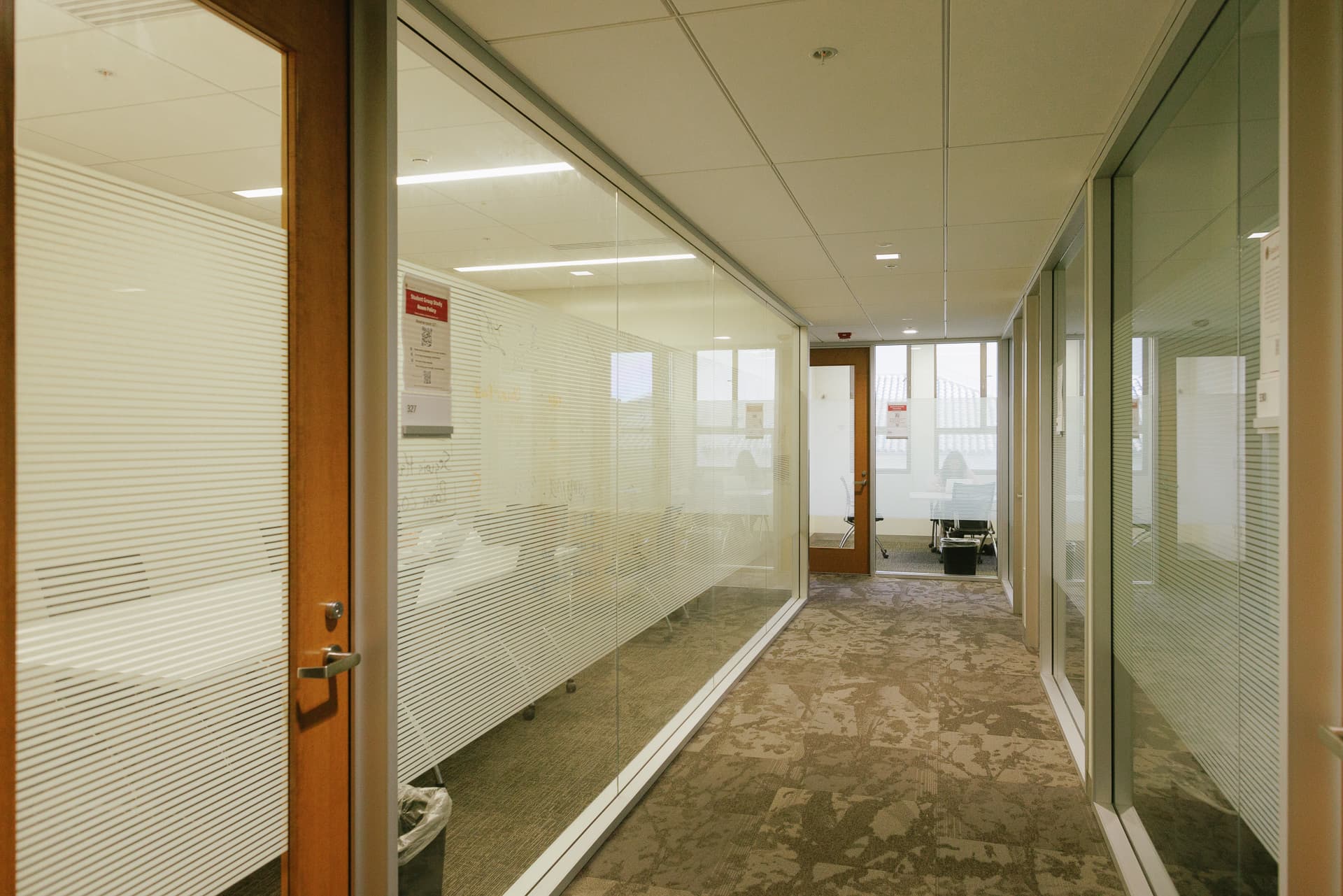 Our group study rooms, located on the third floor, can accommodate between four and ten people. Groups of two or more may reserve these rooms for up to four hours.