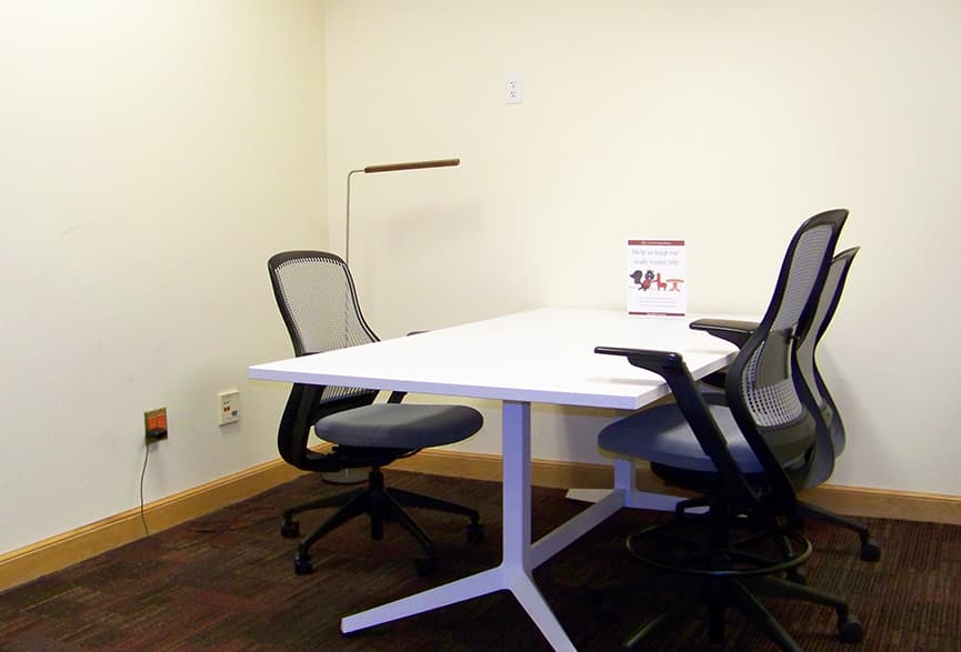 Photo ![]() | Group study room Room-105d 2-4 people | Library Cecil H. Green Library | Open/Closed | Features Features: Conversation space, Whiteboard, Large monitor (30 x 55 in.) Reserve space at Cecil H. Green Library |