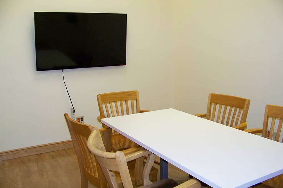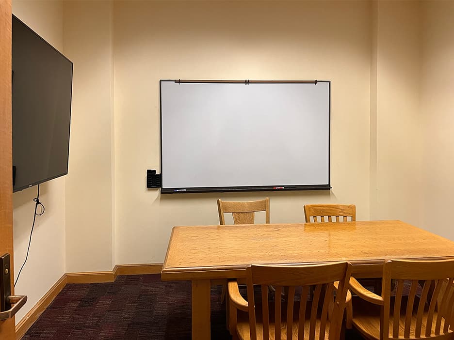 Photo | Richard B. Hooper '37 Group study room Room-205b 2-4 people | Library Cecil H. Green Library | Open/Closed | Features Features: Conversation space, Large monitor (30 x 55 in.), Whiteboard Reserve space at Cecil H. Green Library |