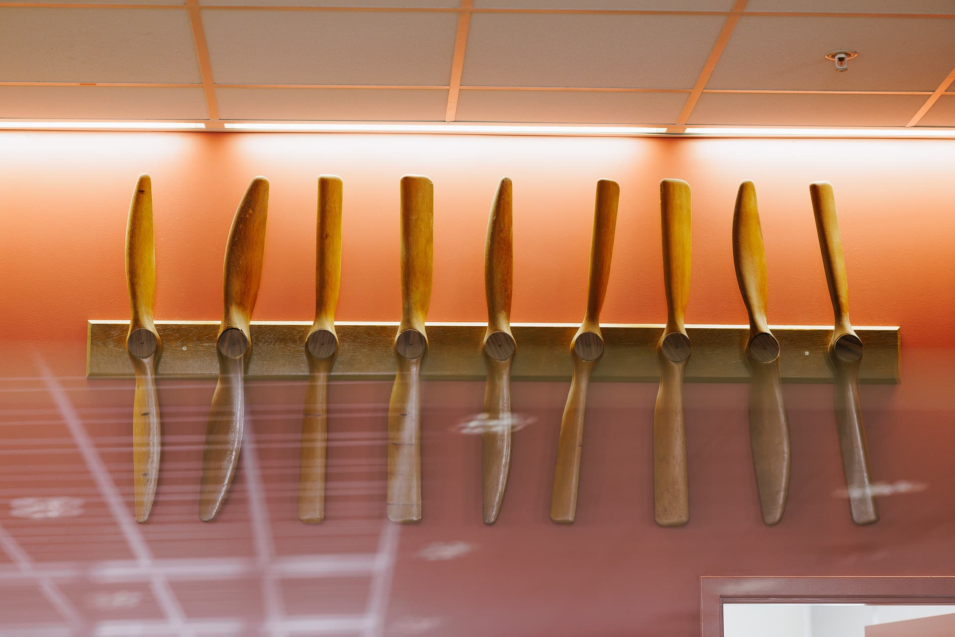 The back of each propeller is numbered and has shorthand notes written on them (for example #29 says 7 P,F,A,T 2) relating to the experiments.